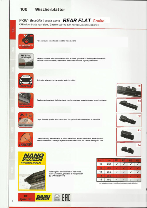 tabla de Aplicaciones que permite seleccionar fácilmente la longitud de escobilla adecuada
